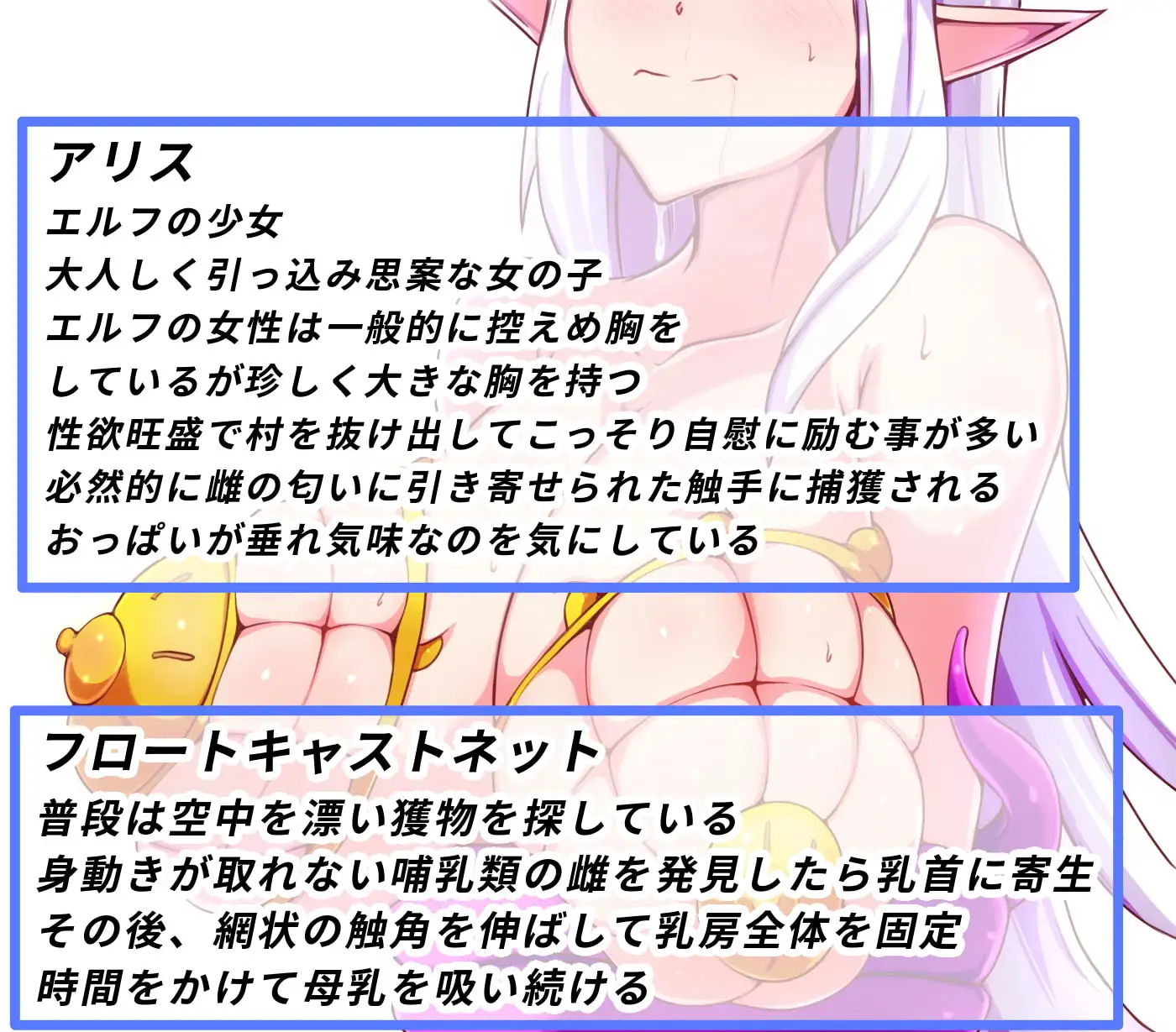 女の子に寄生する生物の生態と寄生された女の子のプロフィール付きのCG集です。