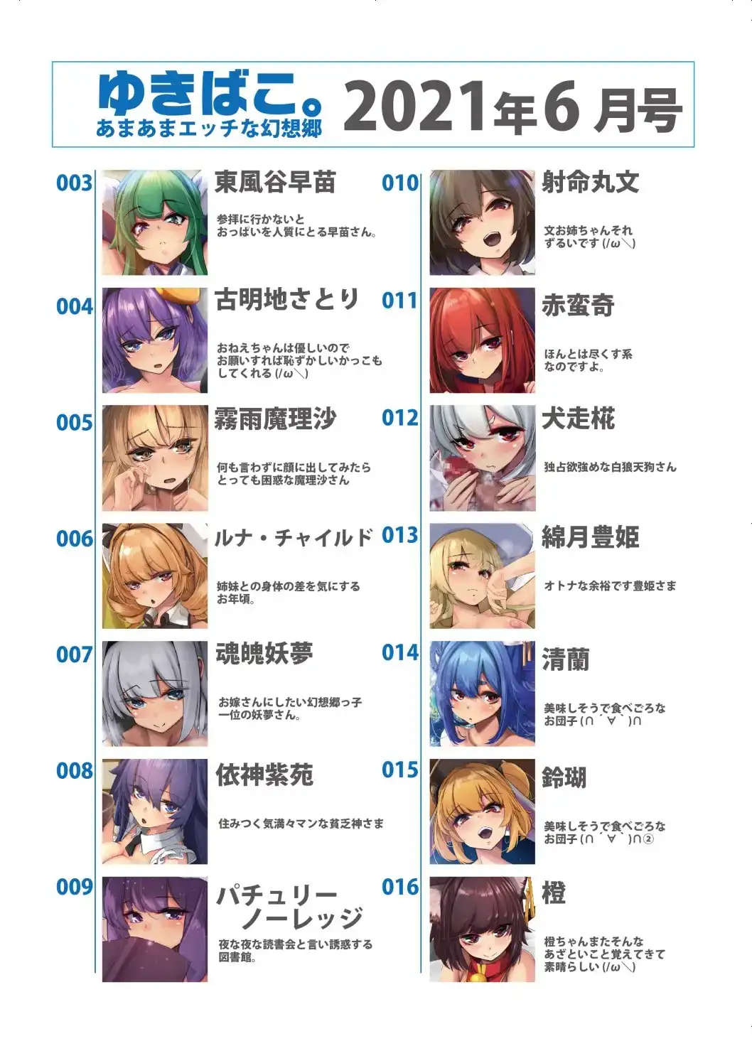 このページでは、未成年者閲覧禁止の同人作品、『あまあまえっちな幻想郷~ゆきばこ~2021年6月号~』を紹介しています。ネタバレ注意。