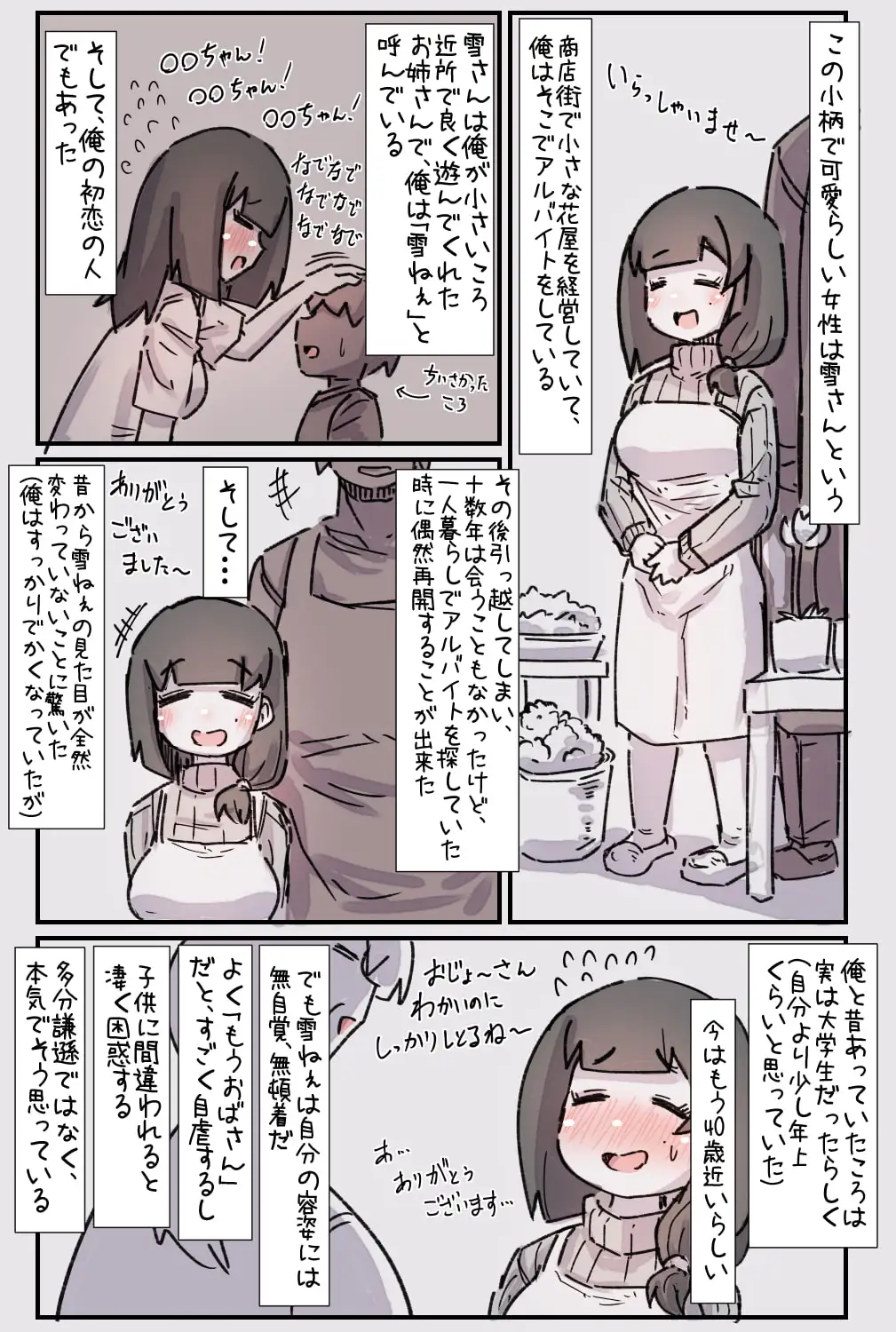 ある日アルバイトを探していた「俺」は、近所の商店街の花屋で、昔お隣に住んでいたお姉さんと十数年ぶりに再会する。