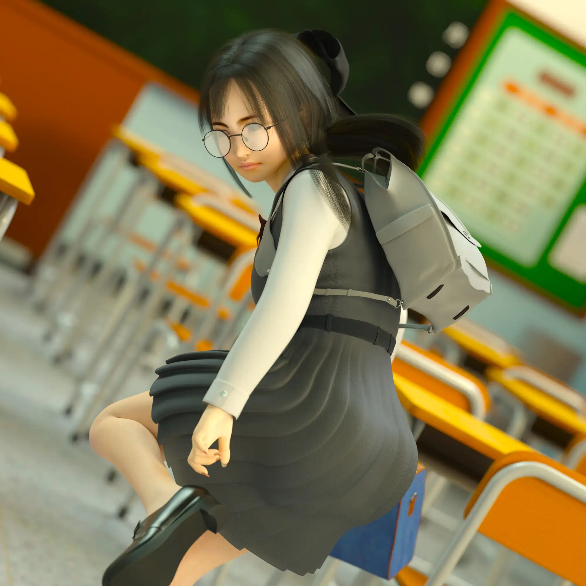 黒髪で地味な眼鏡っ子の3DCG画像集!