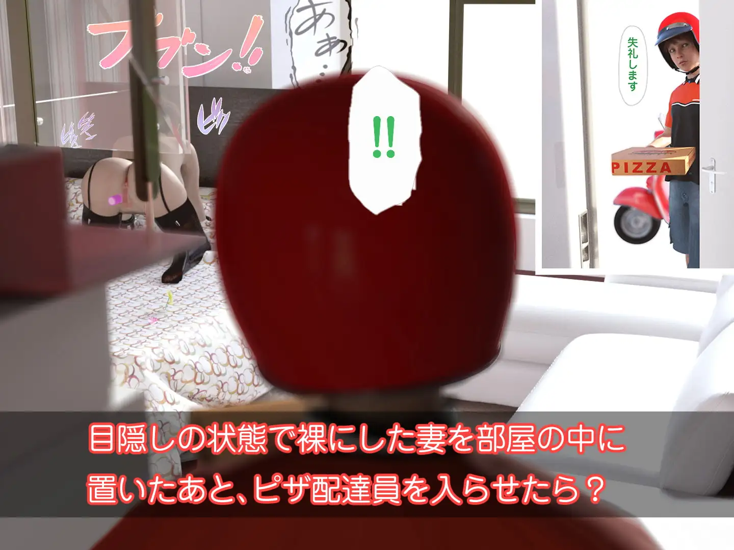 目隠しの状態で裸にした妻を部屋の中に置いたあと、 ピザ配達員を入らせてみた。