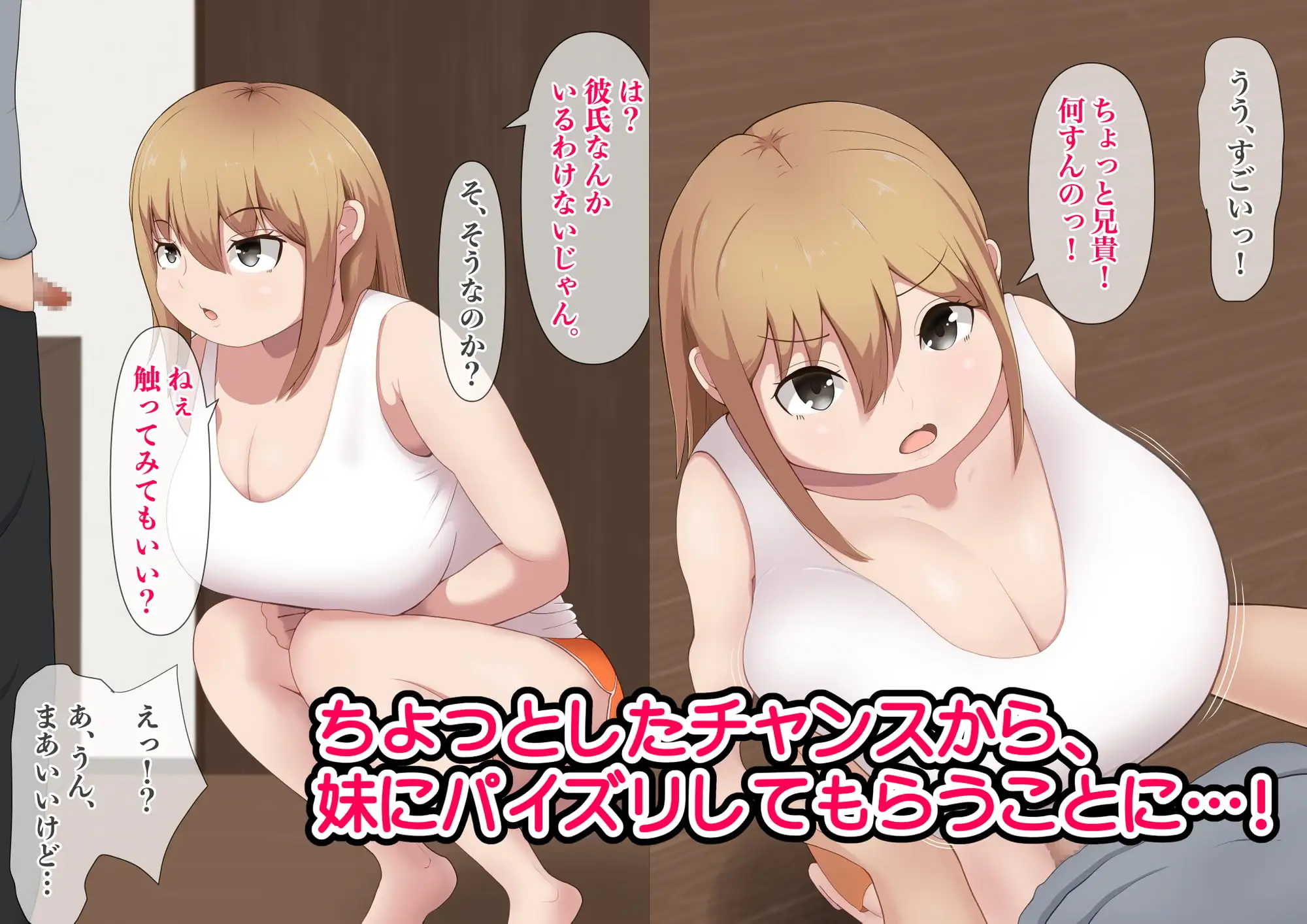 このページでは、未成年者閲覧禁止の同人作品、『最初は嫌がっていた妹にお願いし続けたらパイズリで抜いてくれるようになった話』を紹介しています。ネタバレ注意。