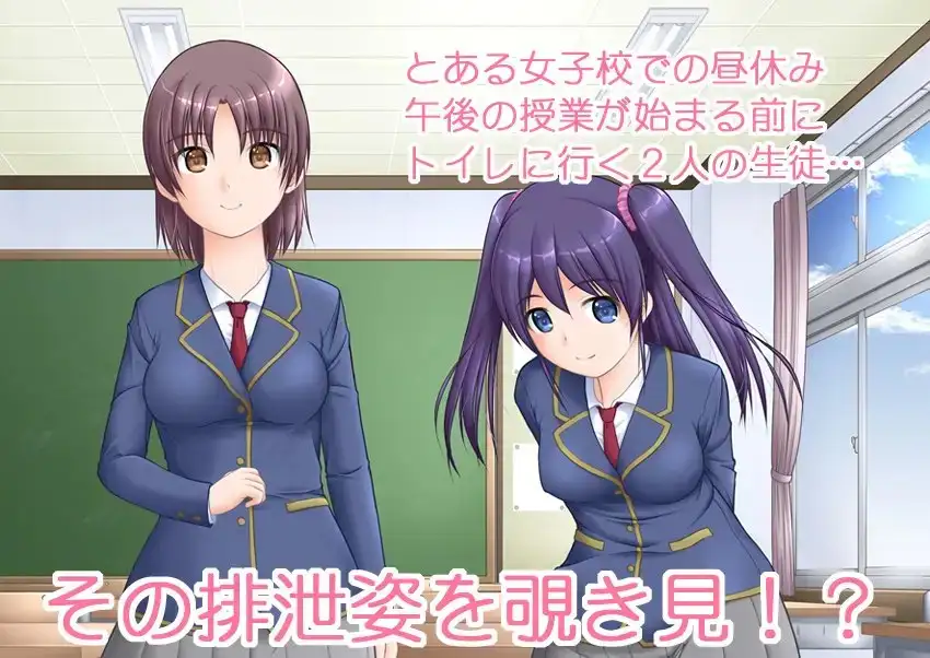 とある女子校での昼休み、2人の女の子がトイレで排泄する様子を盗撮風に描いたCG集です。