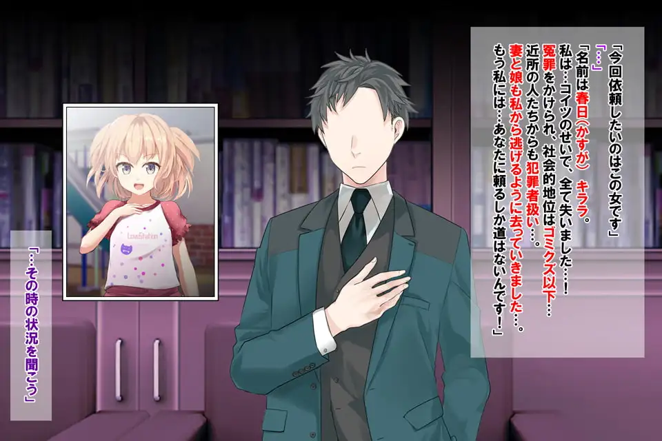 大人を脅し、金を巻き上げ、人生を踏みにじるメスガキ『春日キララ』を”成敗”するお話です。基本CG数:9 総CG数:219(差分+文字なし+アイキャッチ等含)