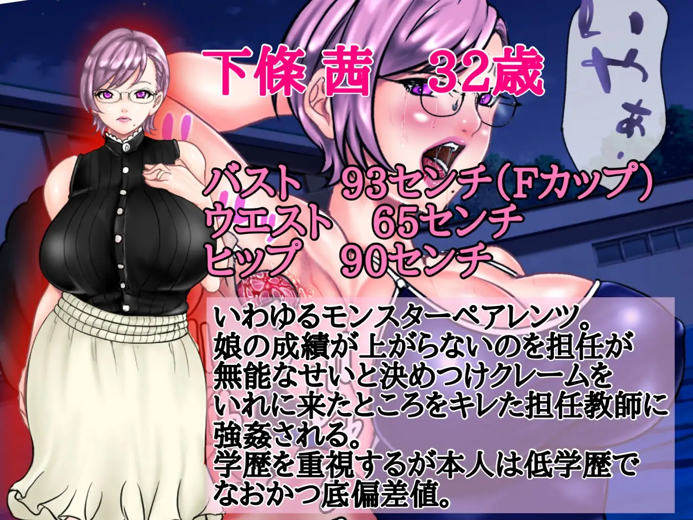 爆乳美人の人妻であり自分の生徒の母親を風俗だけが生きがいのキモい担任教師が理不尽なクレーマーに切れて性欲のままにレイプしてしまうというシンプルなストーリーです。