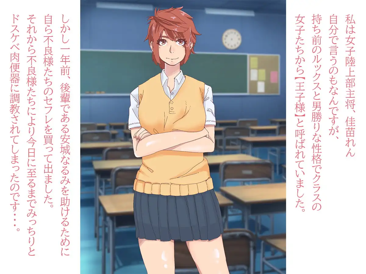 後輩たちに慕われる女子陸上部主将、佳苗れんのイケメンverと、不良たちに玩具にされてみじめによがるド変態verを用意しました。