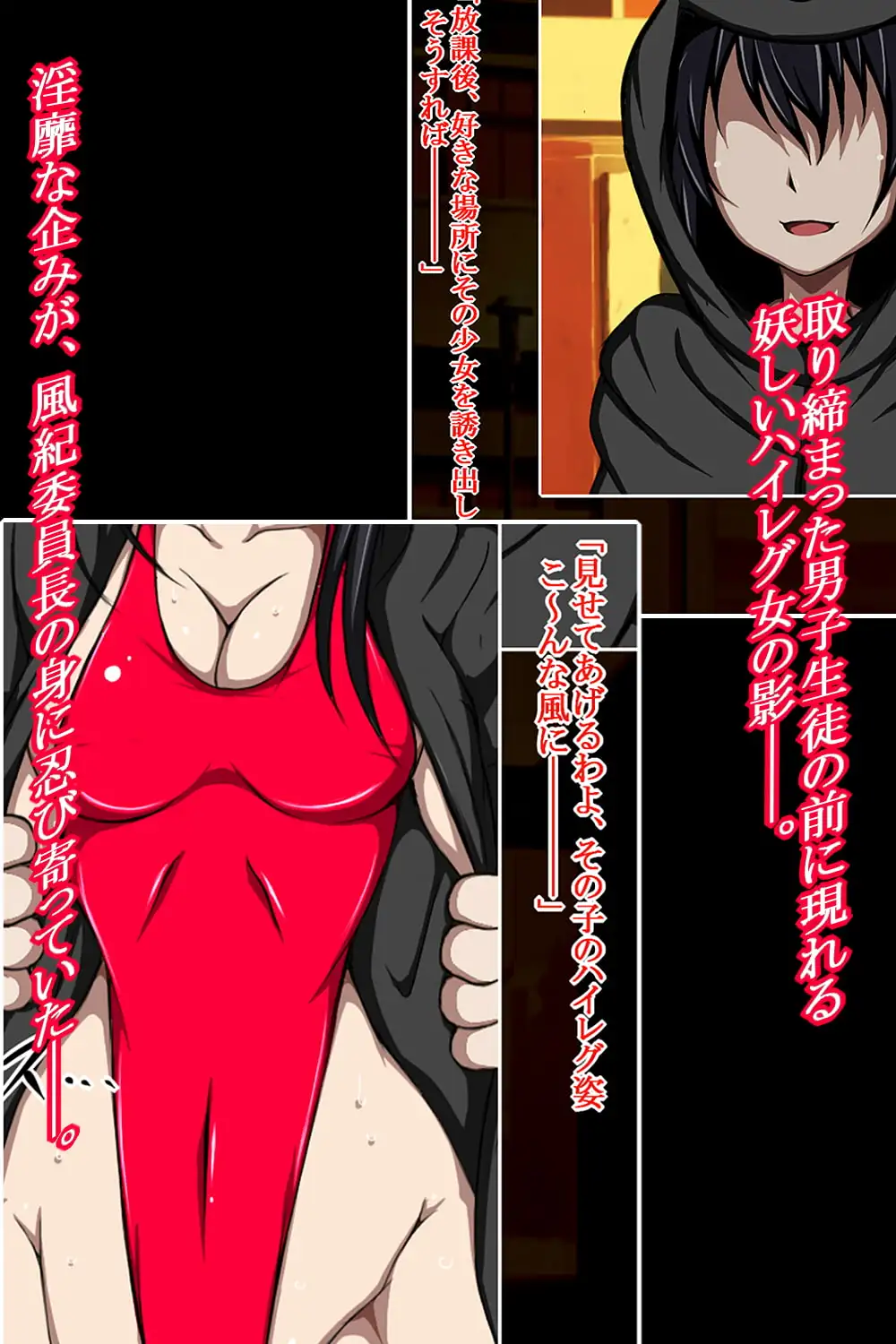 規則・風紀に厳しい潔癖風紀委員長がハイグレ人間に洗脳されてしまい、ハイグレポーズの魔力によって、ド淫乱な変態がに股女へと堕ちていくオリジナルハイグレ洗脳CG集です。