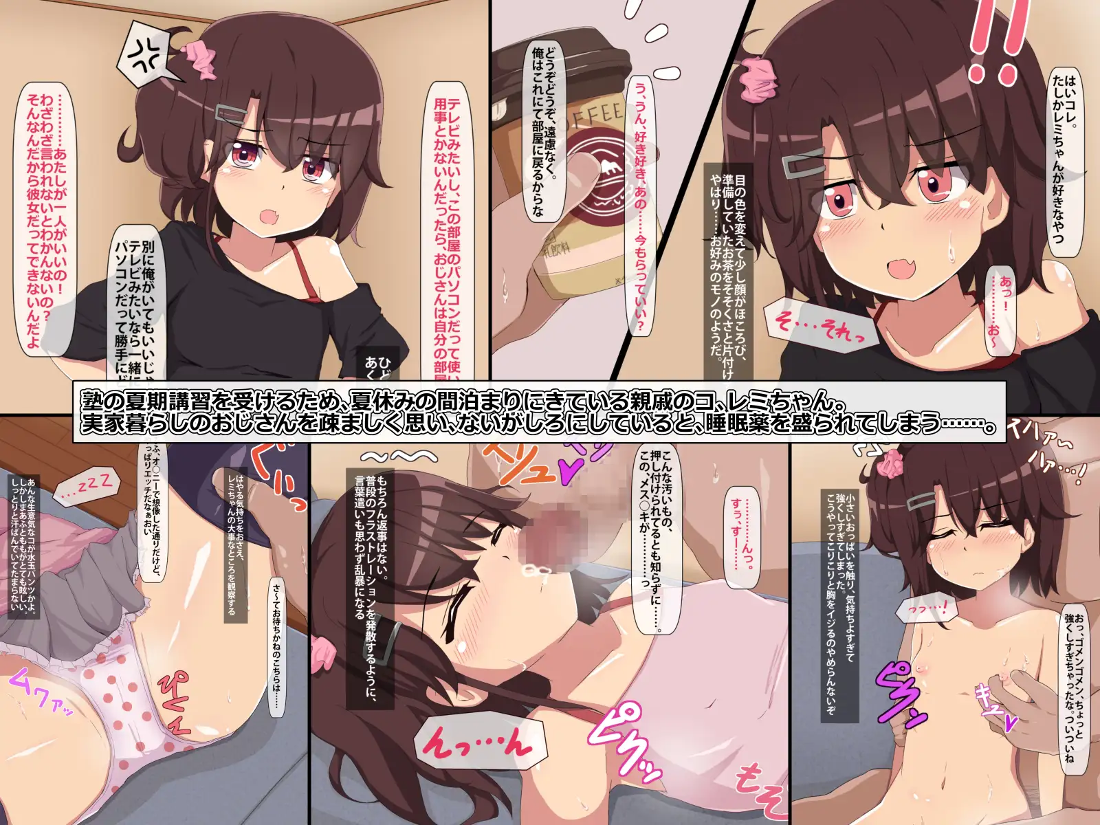 今日という今日は、貯まりに貯まったイライラと性欲を吐き出すことにする。小生意気な親戚のコが薬を盛られ、寝ている間におじさんの性欲処理に使われてしまう睡眠姦同人CG集です。