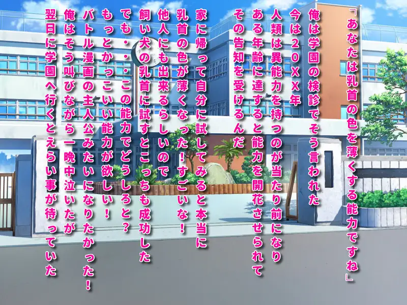 このページでは、未成年者閲覧禁止の同人作品、『異能力学園で乳首の色を薄くする能力の俺はモテまくる』を紹介しています。ネタバレ注意。