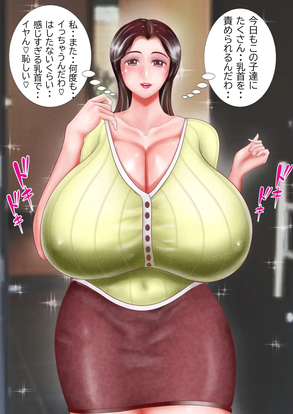 巨乳妻のしのぶは近所で評判の超乳だ。胸を揺らしながら歩く姿は圧巻でファンも多い。その・・しのぶには、誰にも言えない秘密がある。それは・・ひょんな事から知合った近所の少年たちにおっぱいを舐めてもらうことである。乳首が特に敏感なしのぶは、2人の少年たちに長い時間、しつこく両方の乳首を舐めてもらうことがたまらなく好きだ。毎回、何度も激イキしてお漏らししてしまう。今日は久しぶりに2人の少年が家に訪ねてくる日なので、朝からドキドキと胸の鼓動を感じていたのだった。