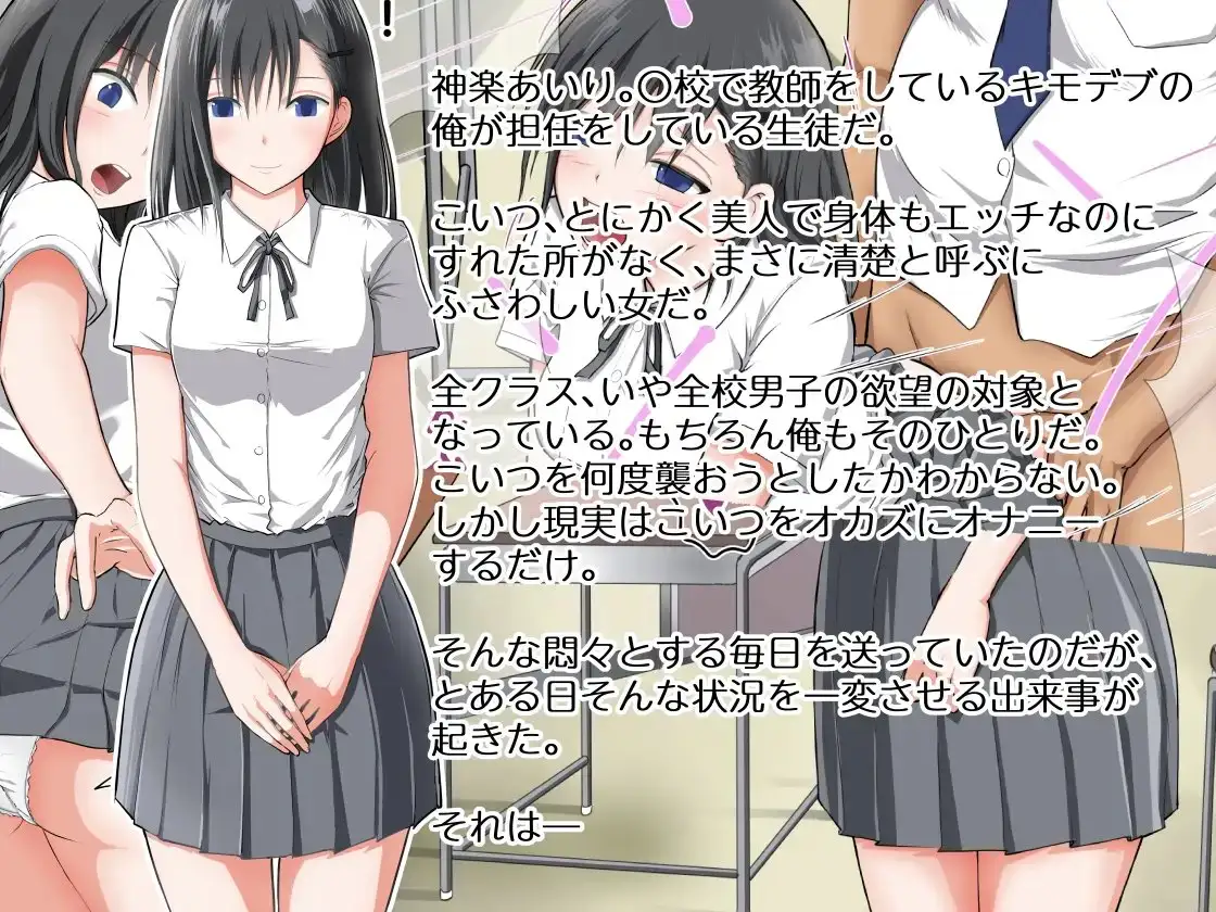 神楽あいり。〇校で教師をするキモデブの俺が担任する女生徒だ。こいつ、可愛くて身体もエッチなのに