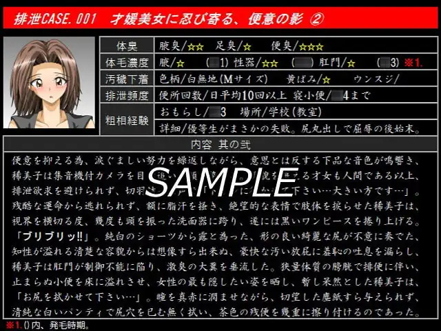 このページでは、未成年者閲覧禁止の同人作品、『【シーンCG追加】新・排泄CASE.001~006』を紹介しています。ネタバレ注意。