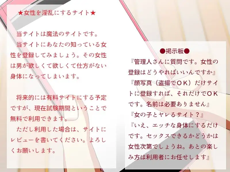 『女性を強制的に淫乱にするサイト』。そして妻は、そのサイトに登録されてしまい、セックスに溺れていく。