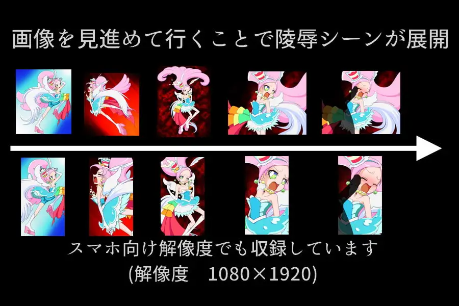 キ○アパルフェが敗北し、変身衣装のまま、あるいは半裸、あるいは全裸で犯されてていくCG集。