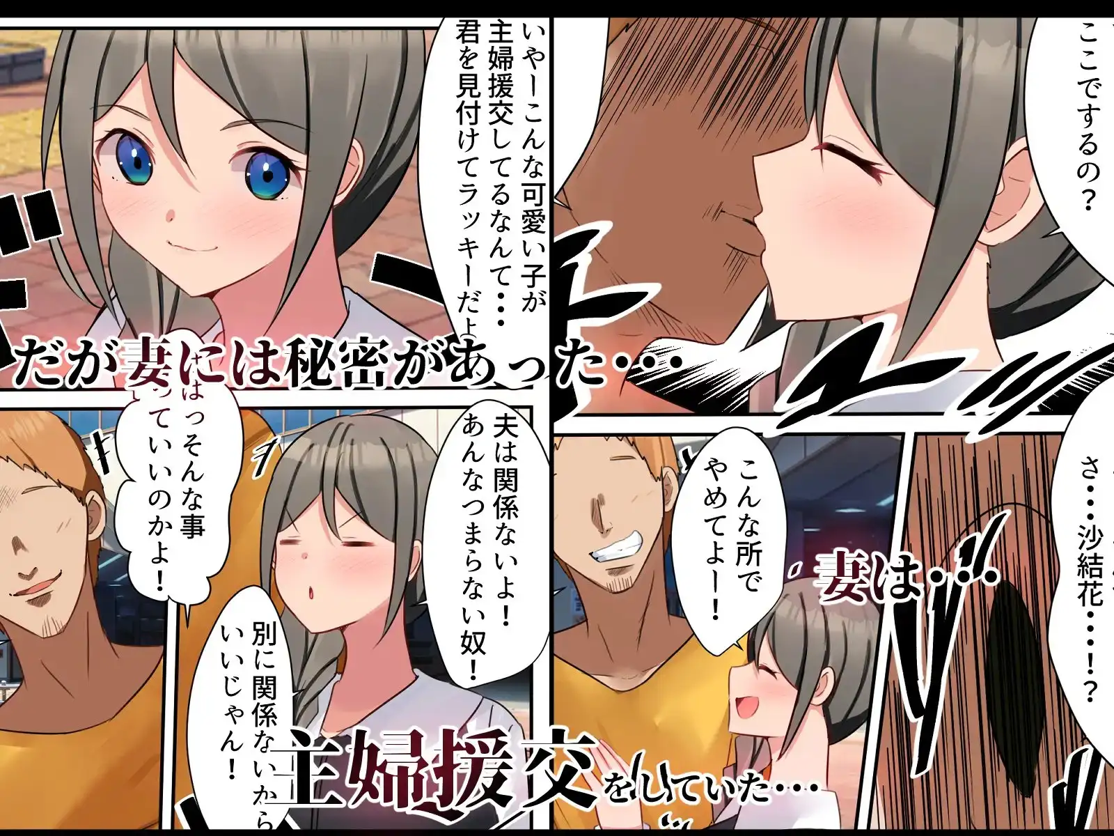 このページでは、未成年者閲覧禁止の同人作品、『主婦援交 清楚な妻が夫に内緒で見知らぬ男にカラダを売り寝取られ犯される話』を紹介しています。ネタバレ注意。