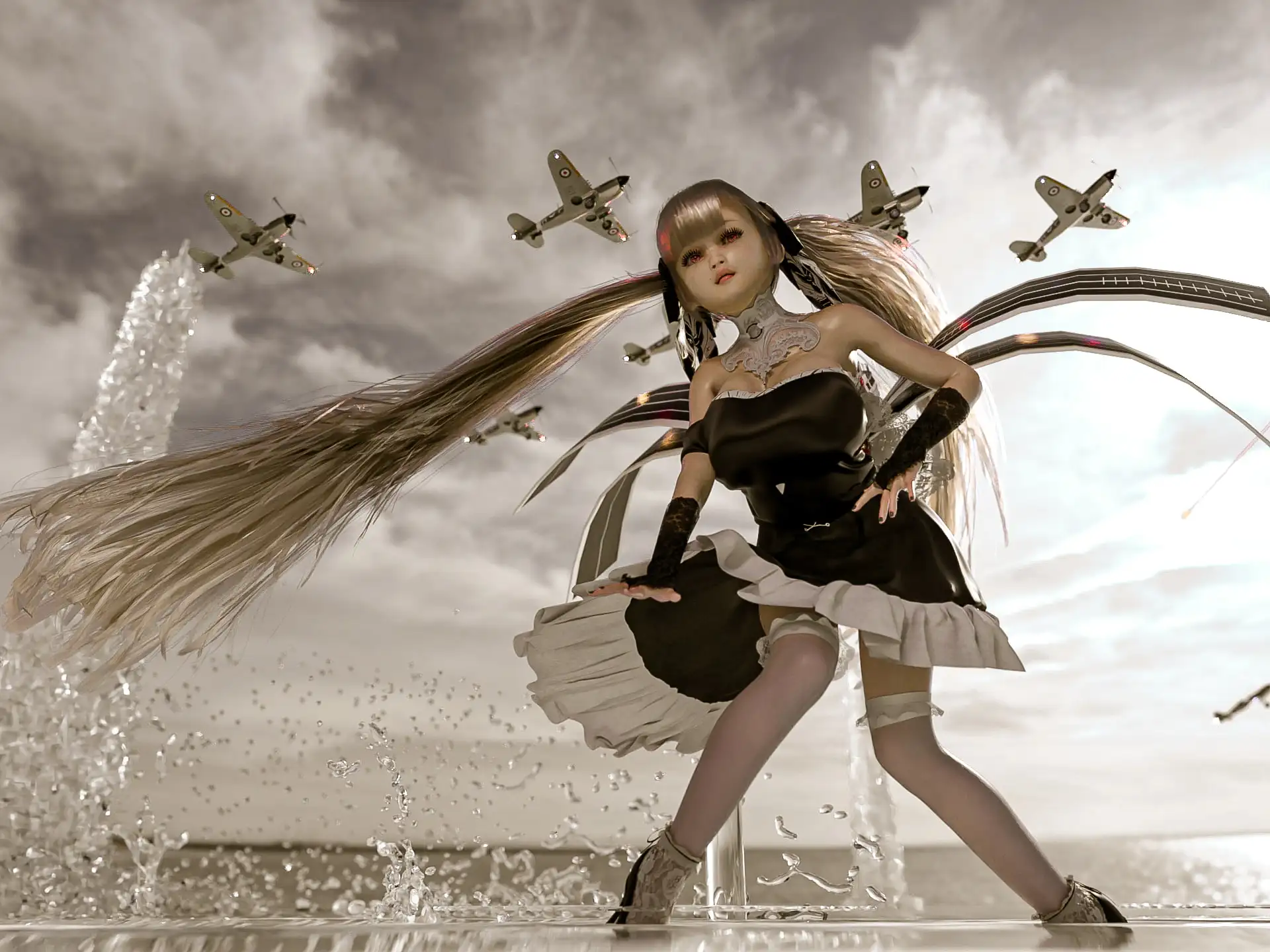 とても長い金髪スーパーロングツインテールにとてもたわわでご立派なものを持っている爆乳お嬢様のヌード3DCG集。メインはぽっちゃり指揮官との夜戦。おまけでは爆乳姉妹やキャラのリメイクのサンプル画像が多数含まれます。