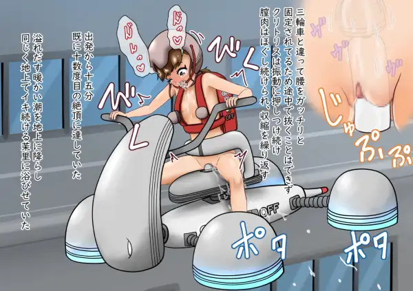 学園の女子生徒たちが、様々なバイブ風の乗り物に乗って通学します。