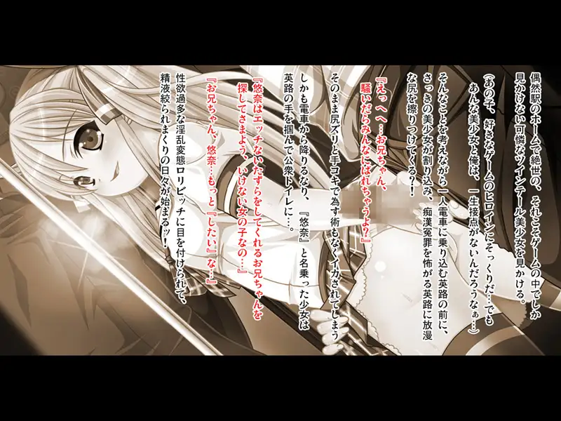 しかも電車から降りるなり、『悠奈』と名乗った少女は英路の手を掴んで公衆トイレに…。『悠奈はエッチないたずらをしてくれるお兄ちゃんを探してさまよう、いけない女の子なの…』