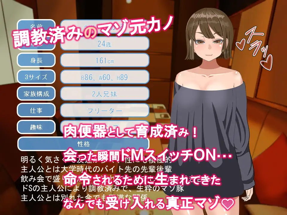 「ひかる」は学生時代に主人公によりドMにされ、調教済みのマゾ豚だ。「元カノ(ひかる)とのセックスを今カノ(さき)に見せつけ、今カノのドMを強制的に覚醒させる」