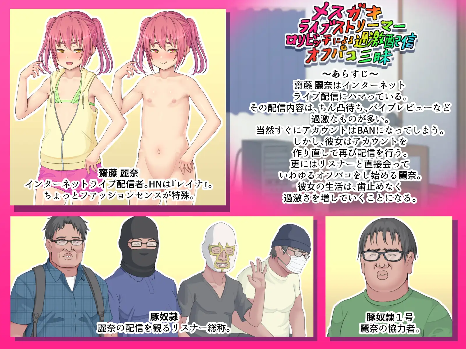 このページでは、未成年者閲覧禁止の同人作品、『メスガキライブストリーマー ロリビッチによる過激配信オフパコ三昧』を紹介しています。ネタバレ注意。