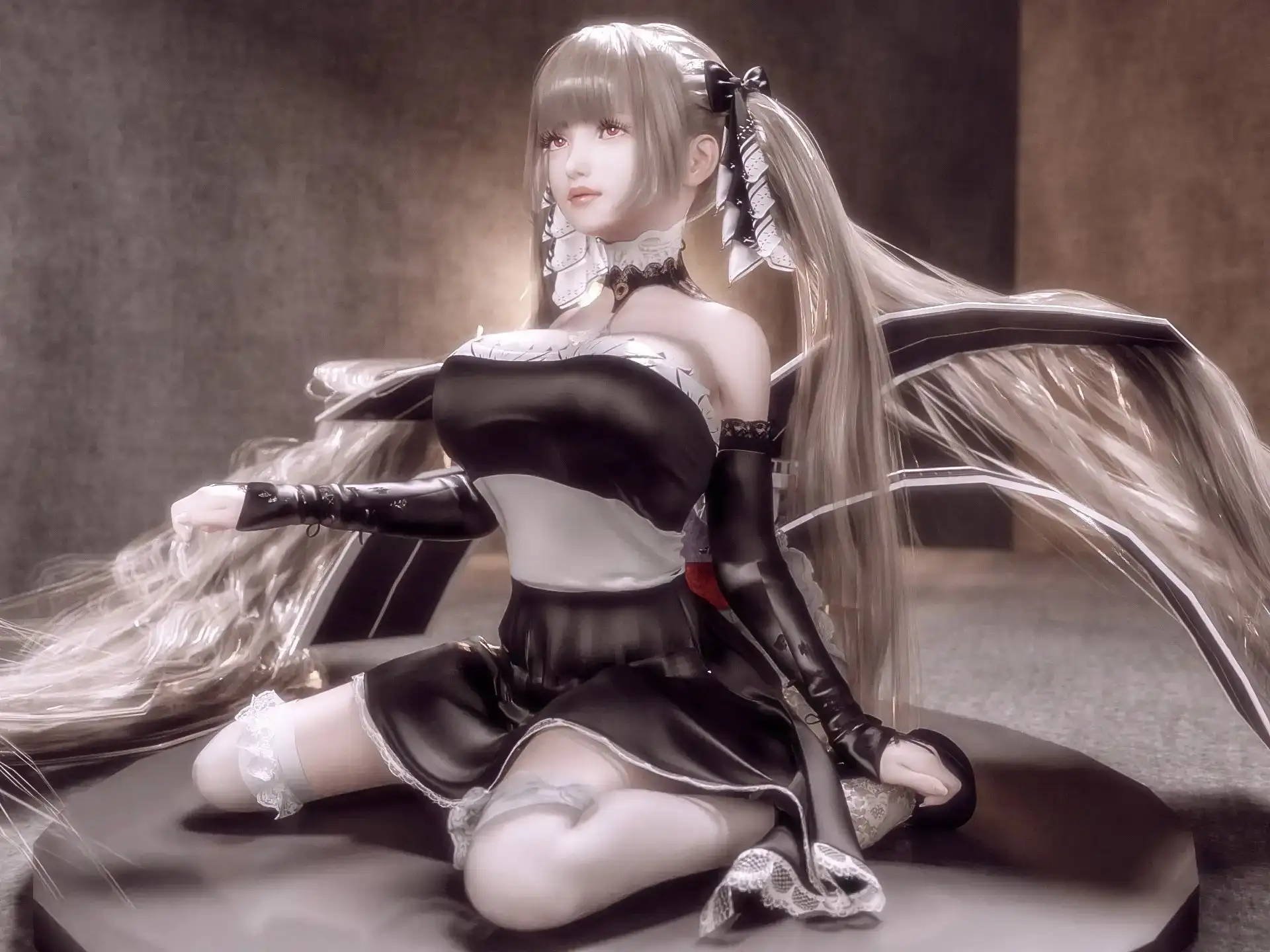 スーパーロングツインテールの爆乳ロイヤルレディーが牛娘になって、搾りたての母乳でミルクティーを飲ませてくれる牧場の3DCG集