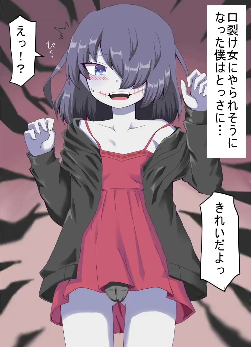 このページでは、未成年者閲覧禁止の同人作品、『口裂け女を褒め殺ししたら惚れられてイチャラブセックスざんまいになりました』を紹介しています。ネタバレ注意。