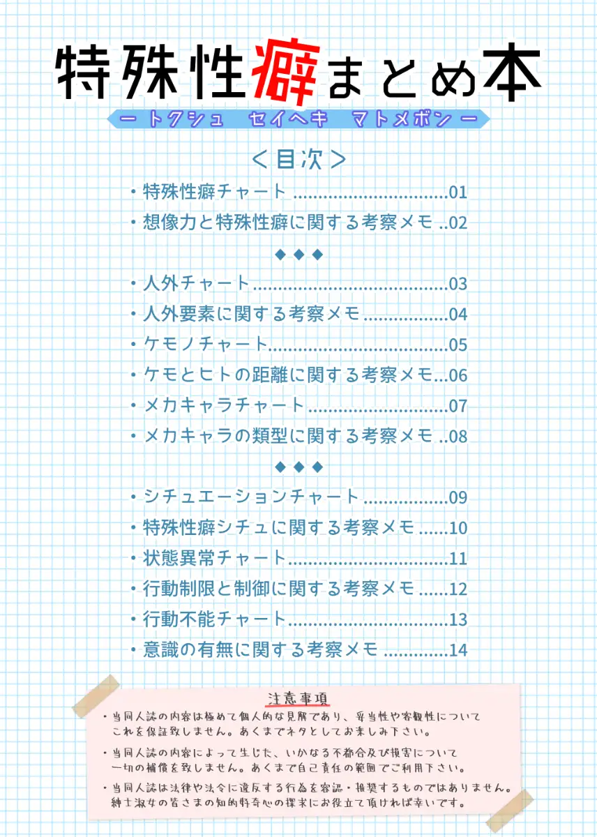 このページでは、未成年者閲覧禁止の同人作品、『特殊性癖まとめ本』を紹介しています。ネタバレ注意。