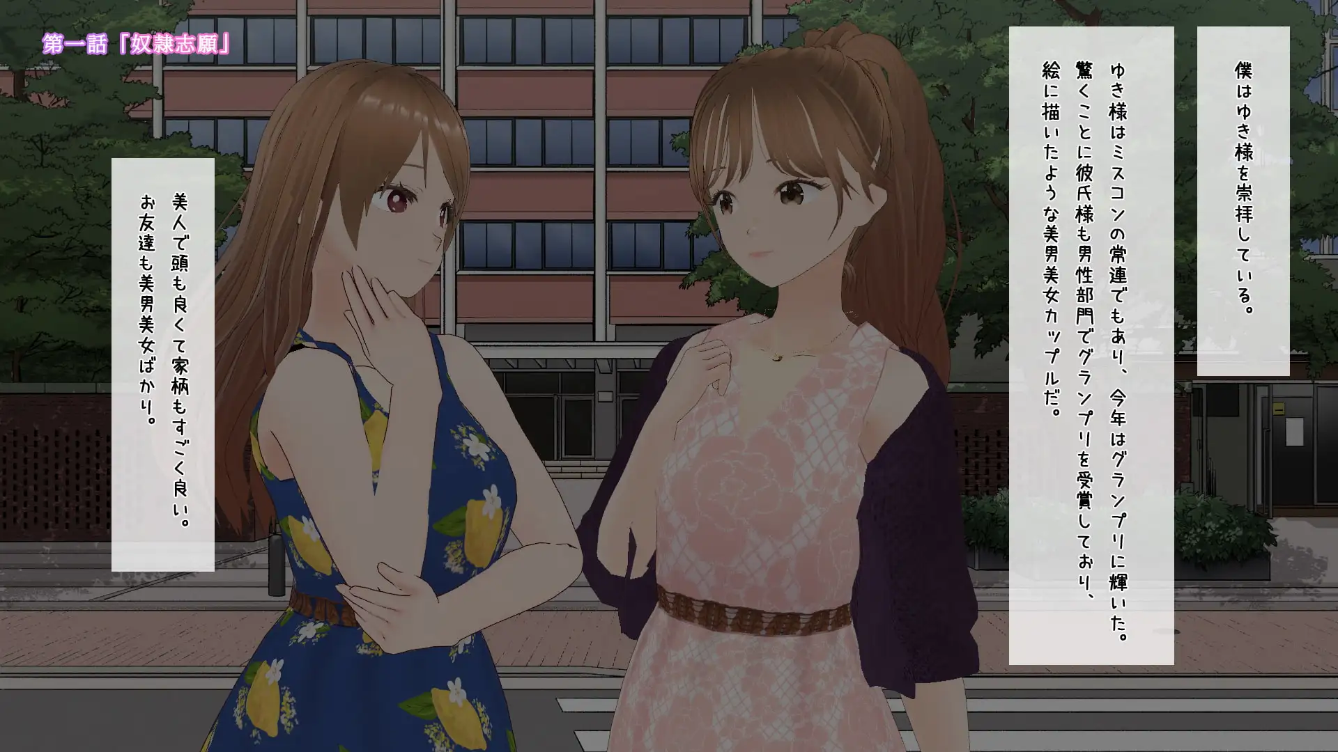 このページでは、未成年者閲覧禁止の同人作品、『美男美女カップルの奴隷になった僕』を紹介しています。ネタバレ注意。