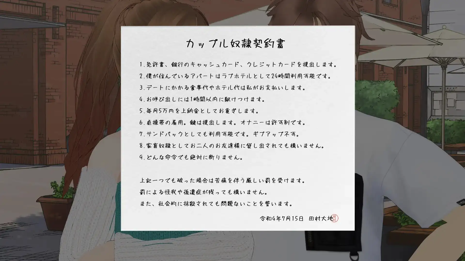 人権を無視したカップル奴隷契約書を提出することにー。カップル奴隷として、