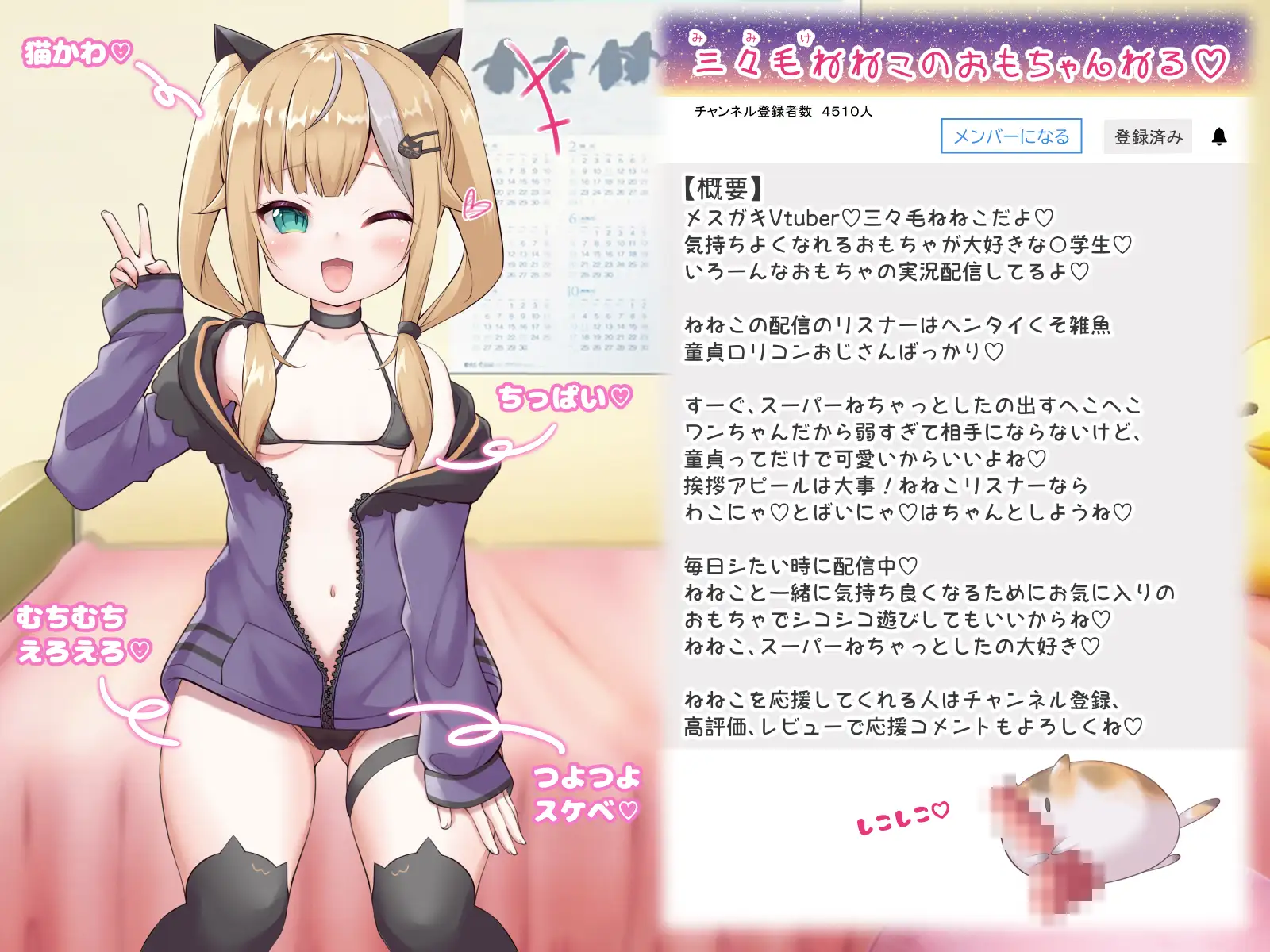 メスガキVtuberの三々毛ねねこは大人のおもちゃ(性玩具)が大好きな実況配信をしている女の子。
