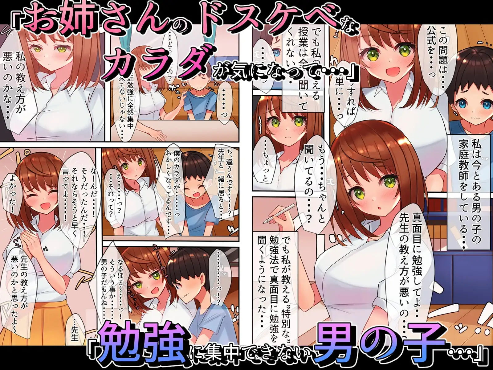 このページでは、未成年者閲覧禁止の同人作品、『勉強が出来ないショタをお姉さんのドスケベなカラダを使ってやる気にさせる話』を紹介しています。ネタバレ注意。