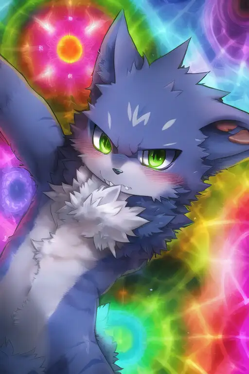例として、サンプル写真の1~5枚目が弱めのサイケで、6~10枚目が強めのサイケ(弱の1.5倍)となっております。NovelAIDiffusion Furry (Beta V1.2)を用いて生成しておりますので、ご参考用にもどうぞ。