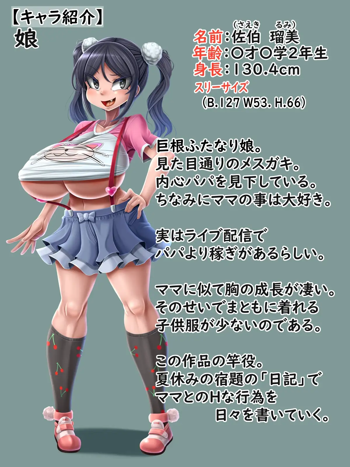 時期は夏休み。娘の瑠美は宿題の日記をこなすため、ママをふたなりチンポで犯す事を日記に記していく。