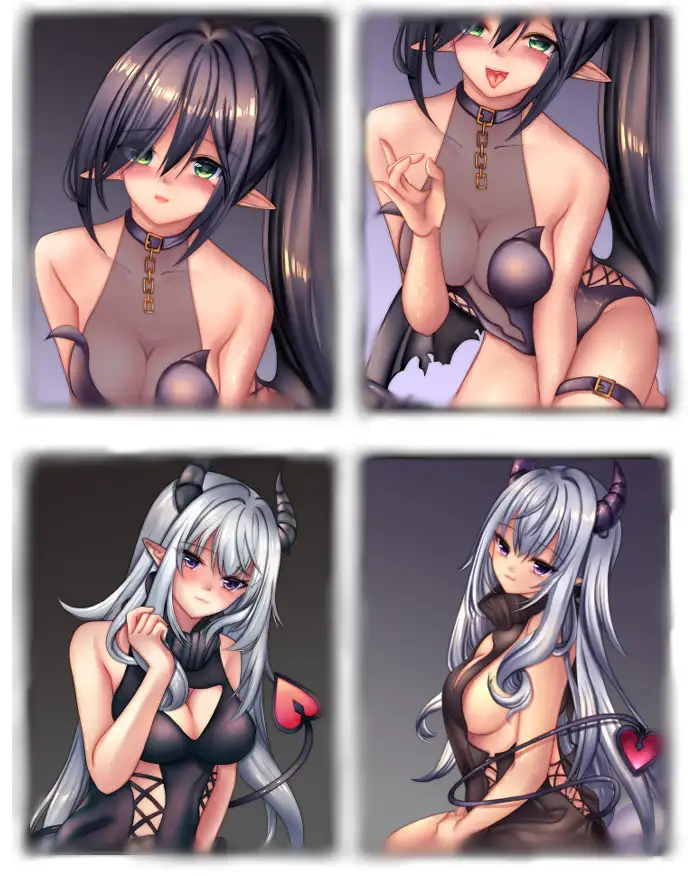 銀髪のサキュバスちゃんと黒髪のサキュバスちゃんに抜き抜きされちゃうイラストを描きました。