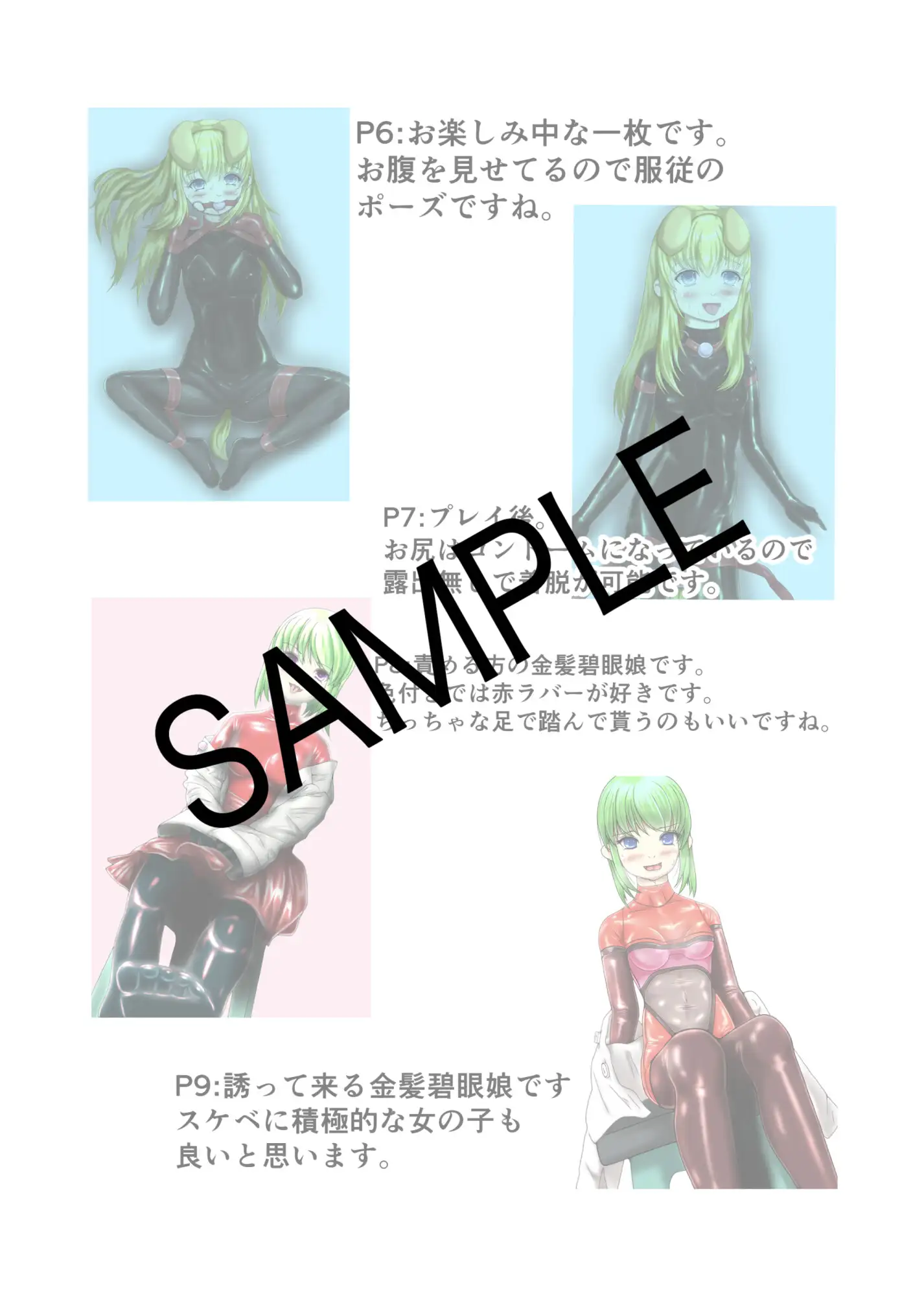 金髪碧眼の女の子にラバースーツを着せてアレコレする同人誌です。