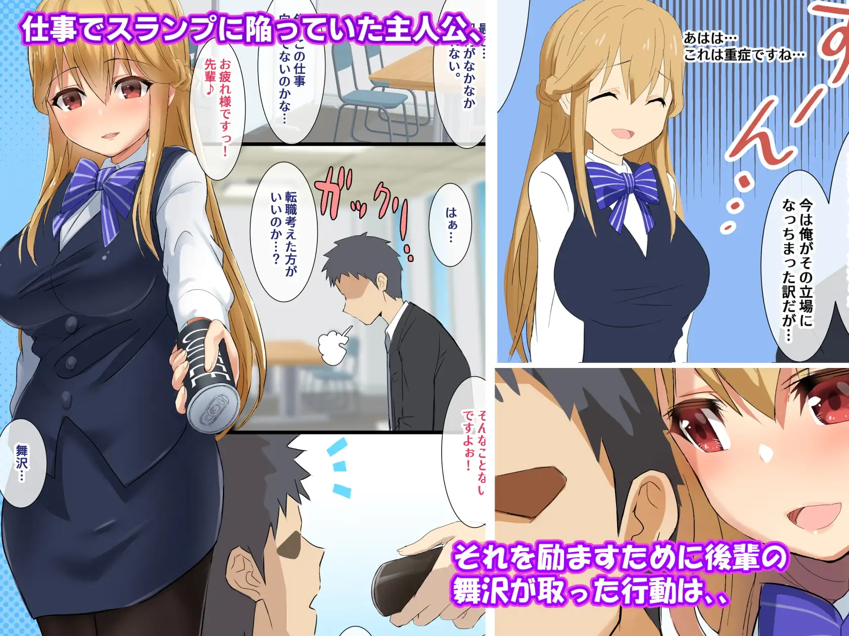 このページでは、未成年者閲覧禁止の同人作品、『会社のトイレの壁の穴 ~後輩社員と秘密の壁越しH~』を紹介しています。ネタバレ注意。