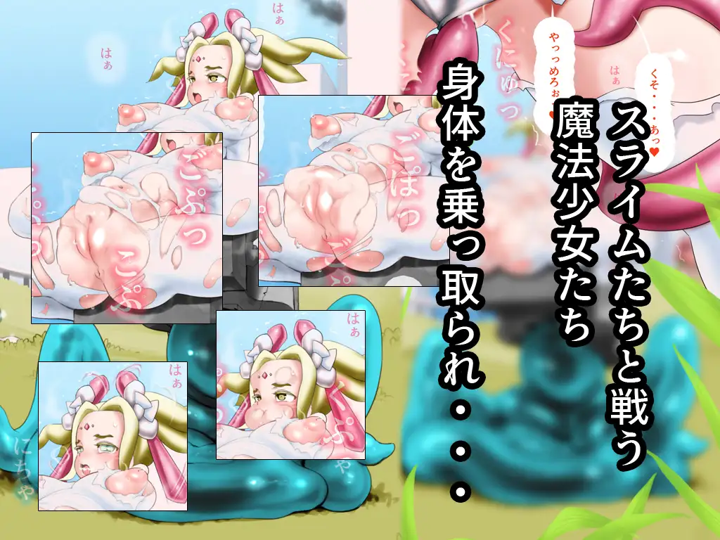 このページでは、未成年者閲覧禁止の同人作品、『魔法少女に憑依したスライムが他のスライムに孕まされる』を紹介しています。ネタバレ注意。