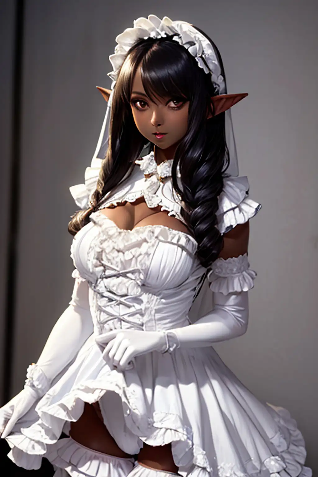 ダークエルフにフリフリな服を着せてみました。資料とかにどうぞ。