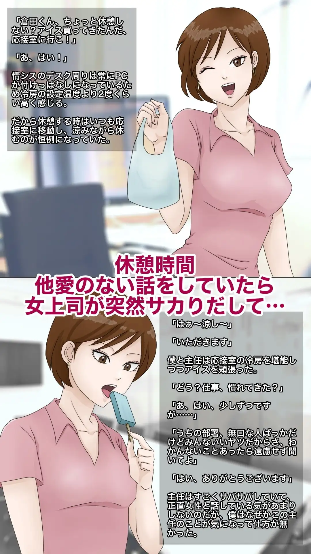 肉食系女上司×童貞若手社員。誰もいないオフィスで二人だけの秘密を共有してしまう。