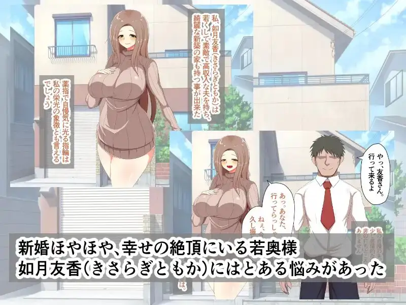 愛する夫と結婚、家も持ち一見すると完璧な生活を営んでいた。しかし、友香の中に滾る情欲に旦那は気付かず冷たくあしらい、