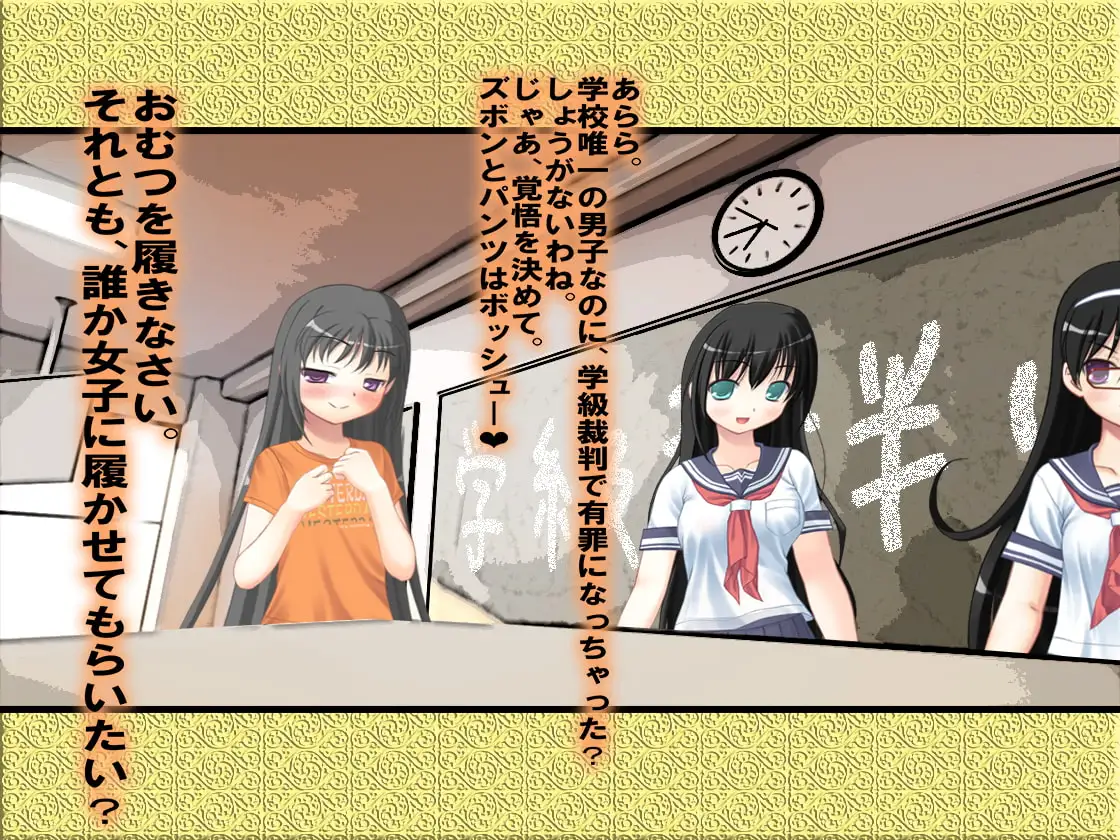 【同人CG・イラスト】判決! 被告人を逆トイレトレーニングの刑に処す!/強制女装・強制女体化・強制男の娘さん