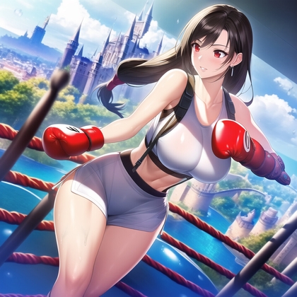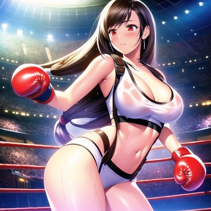 【同人CG・イラスト】ティファさんのボクシング マイクロビキニ トップレス/ラブリーパンチ(パロディ)さん